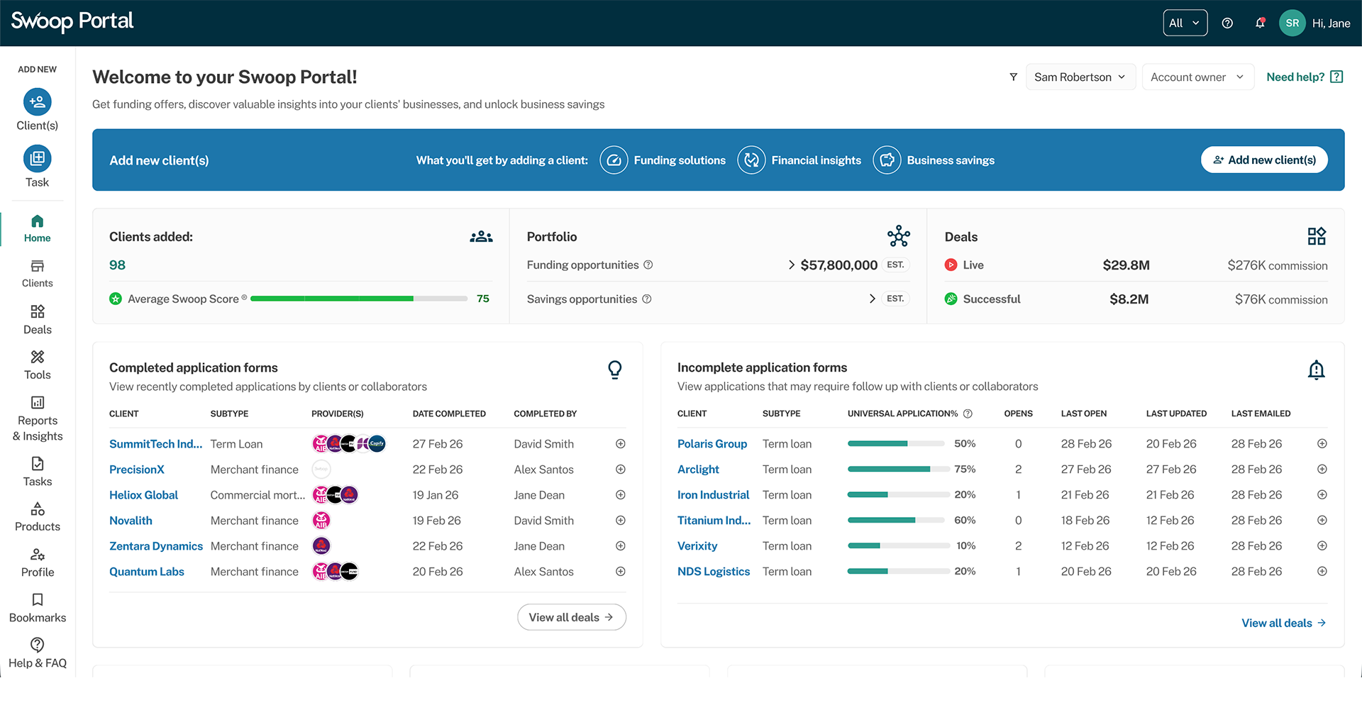 Let Swoop handle the heavy lifting to help your clients secure the funding they need with ease