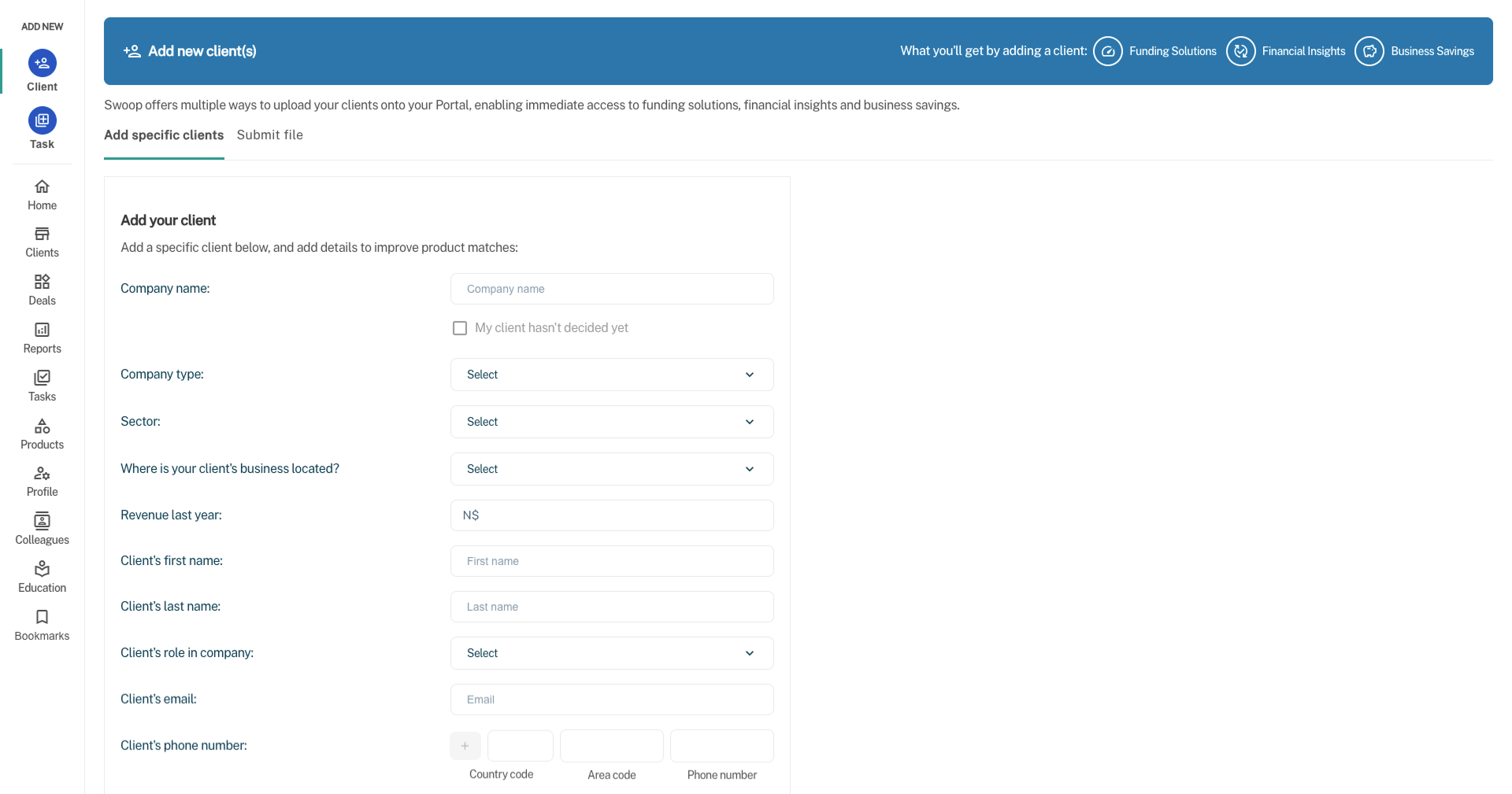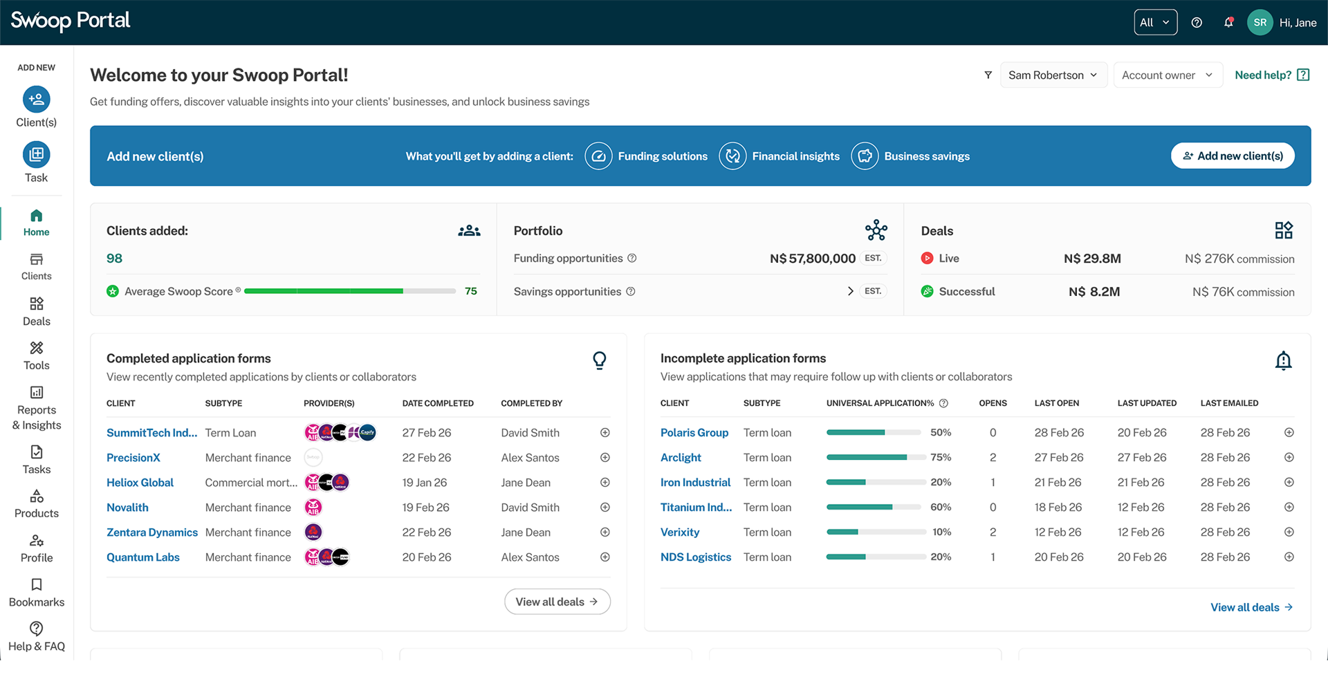 Let Swoop handle the heavy lifting to help your clients secure the funding they need with ease