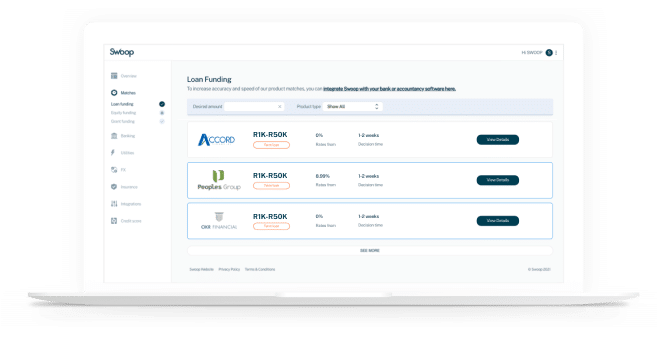 Sage has partnered with Swoop to take the hassle out of finding funds to grow your business, allowing you to search tailored options across loans, equity and grants. We’ll also help you save on your business costs like energy, banking, and more.