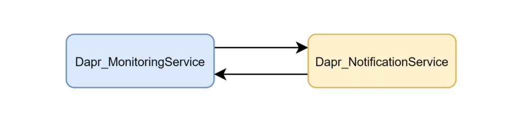 The Dapr_MonitoringService will then locate and inform the Dapr_NotificationService that a notification has to be fired passing along the details of the notification in question.