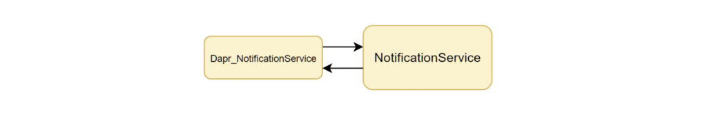 The Dapr_NotificationService will then tell the NotificationService to fire off that notification.