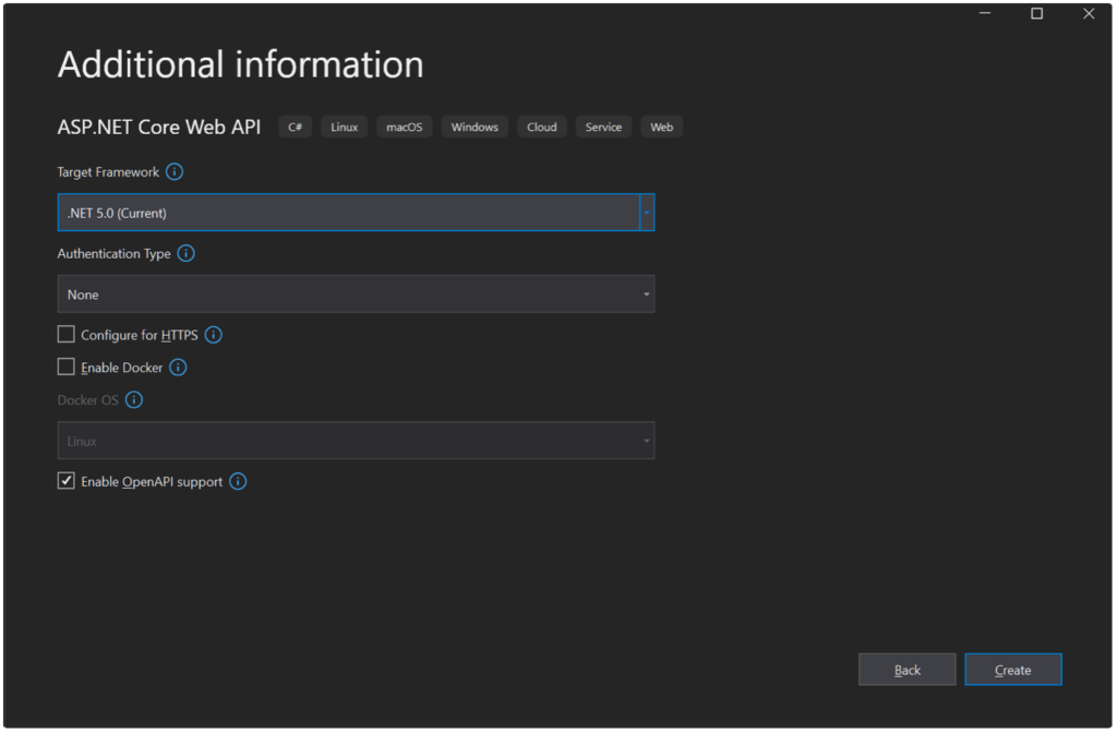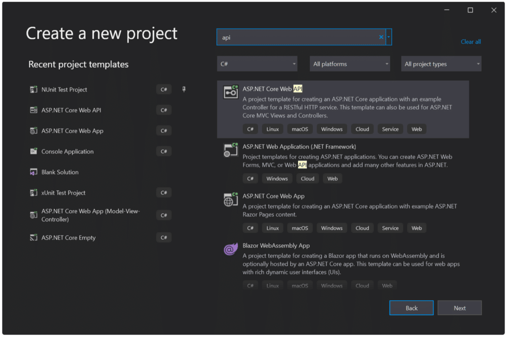 To get started, let’s create a new ASP.NET Core WebApi solution.