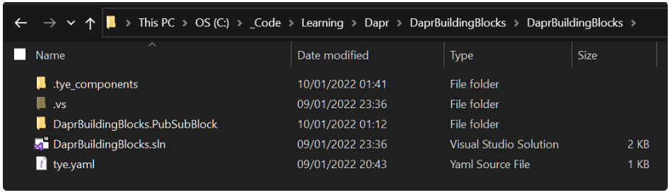 - ASPNETCORE_URLS=http://+:35002As you’ll notice, we’ve specified a components-path field to .tye_components, under the extension name dapr.