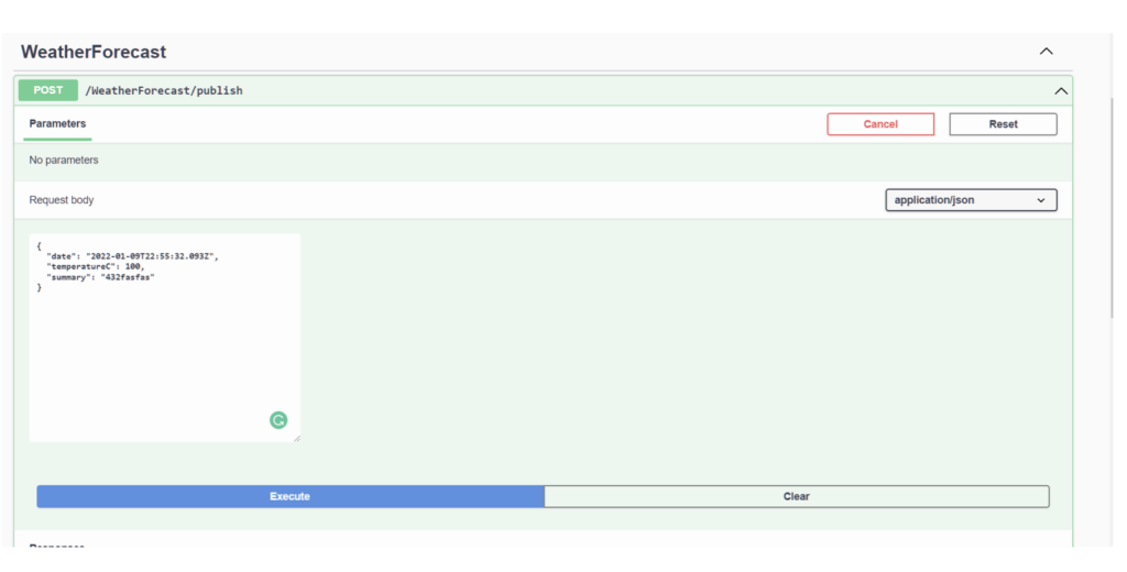 To publish a message, let’s navigate to the WeatherForecastController.cs file.